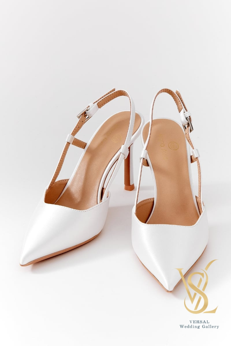 An interesting variation on classic pumps are closed-toe sandals. The pair is fixed on the foot thanks to a thin strap from the toe to the heel.